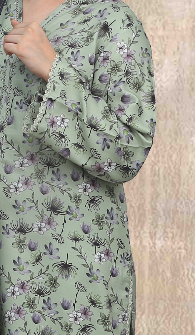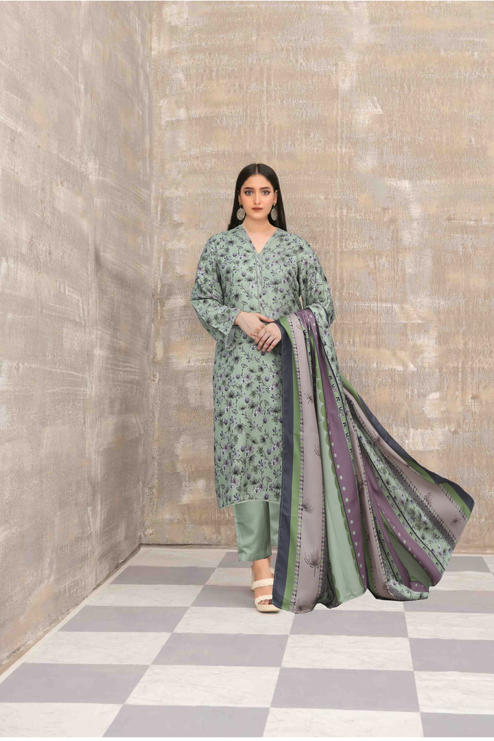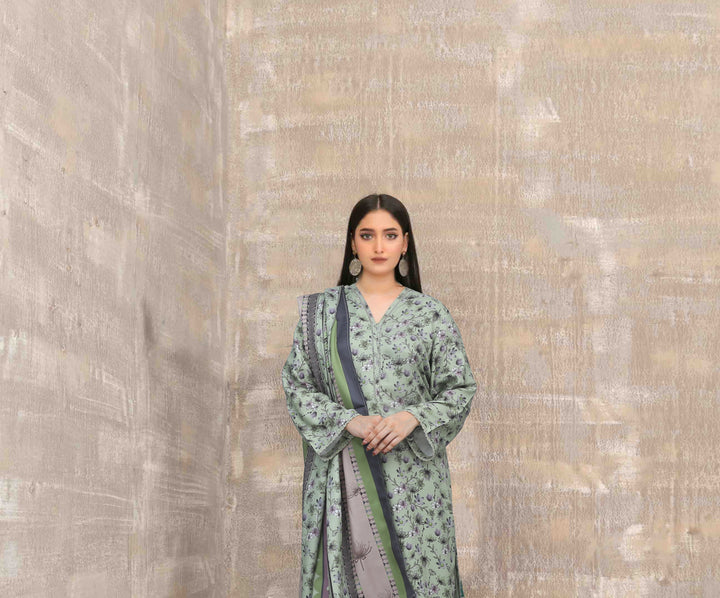This exquisite Festive/Party Wear 3 Piece Kurta Set in Pastel Green is a must-have for your winter wardrobe. Crafted from luxurious Khaddar fabric, the straight-cut kurta features intricate details, paired...