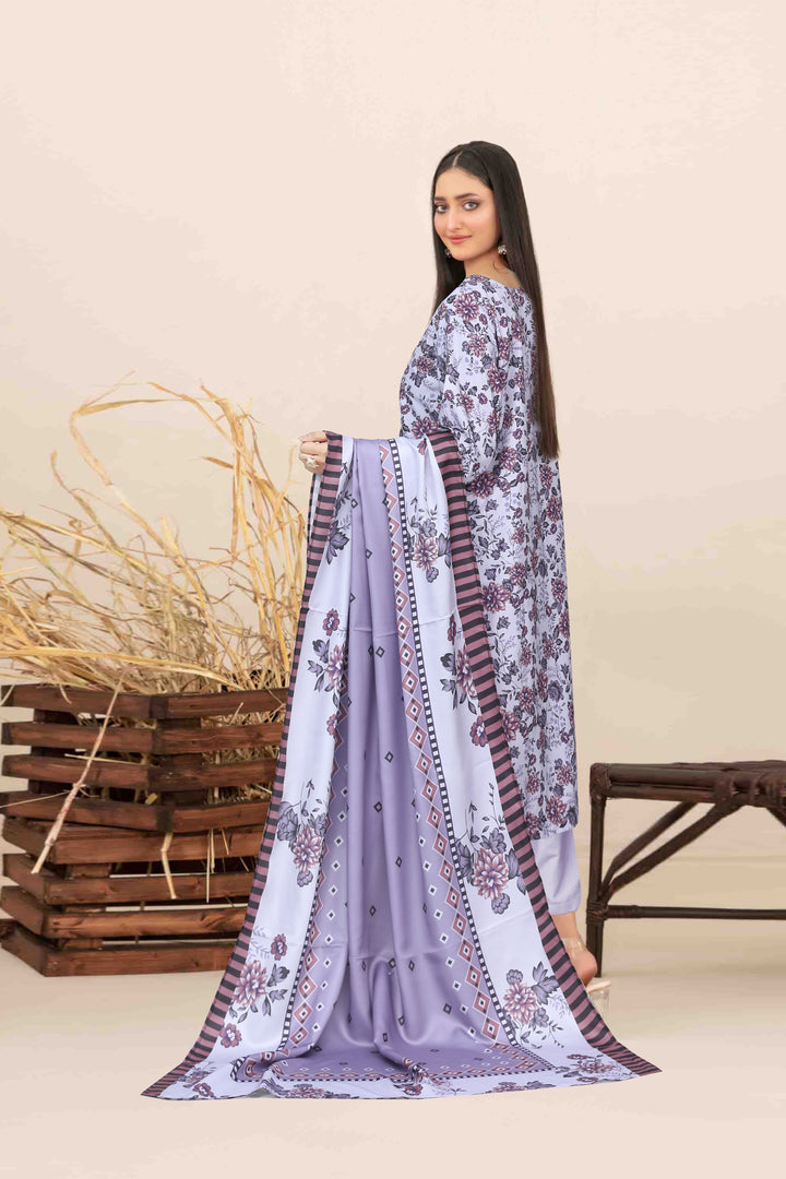 This exquisite Festive/Party Wear Kurta Set by Meherma Ethnic exudes elegance in Lavender Mist. Crafted from Khaddar, the 3-piece ensemble features a straight-cut Kurta, Straight Trouser, and Herringbone Shawl. The...