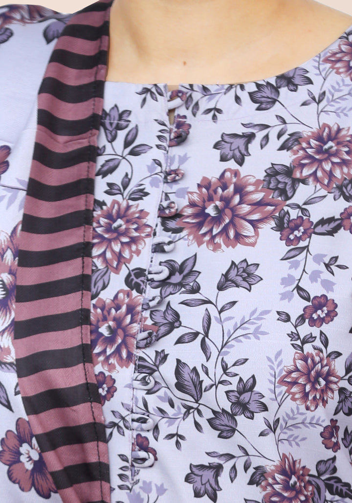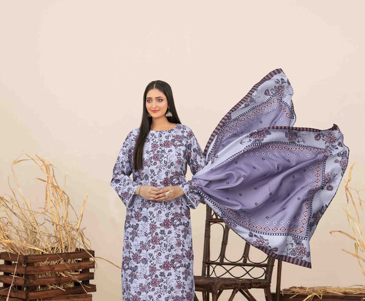 This exquisite Festive/Party Wear Kurta Set by Meherma Ethnic exudes elegance in Lavender Mist. Crafted from Khaddar, the 3-piece ensemble features a straight-cut Kurta, Straight Trouser, and Herringbone Shawl. The loose fit and winter-ready fabrics ensure comfort and style for any special occasion. Perfect for the modern woman seeking traditional charm.